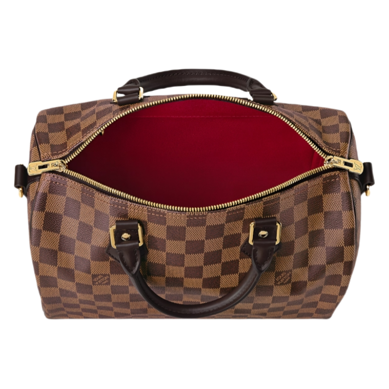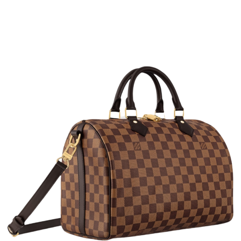 The Speedy Bandoulière 30 in elegant Damier Ebene canvas is an ideal city bag for every day. Originally created for travelers in the 1930s – the name refers to the era's rapid transit – every feature of the Speedy's design is iconic. from its unmistakable shape to the rolled leather handles. engraved padlock and detachable strap.