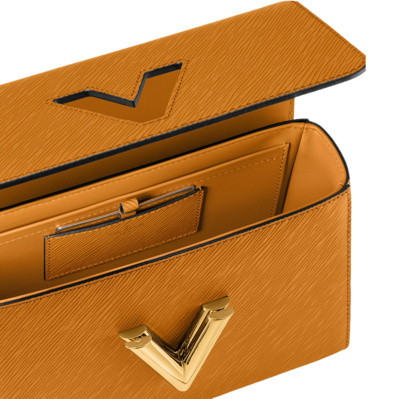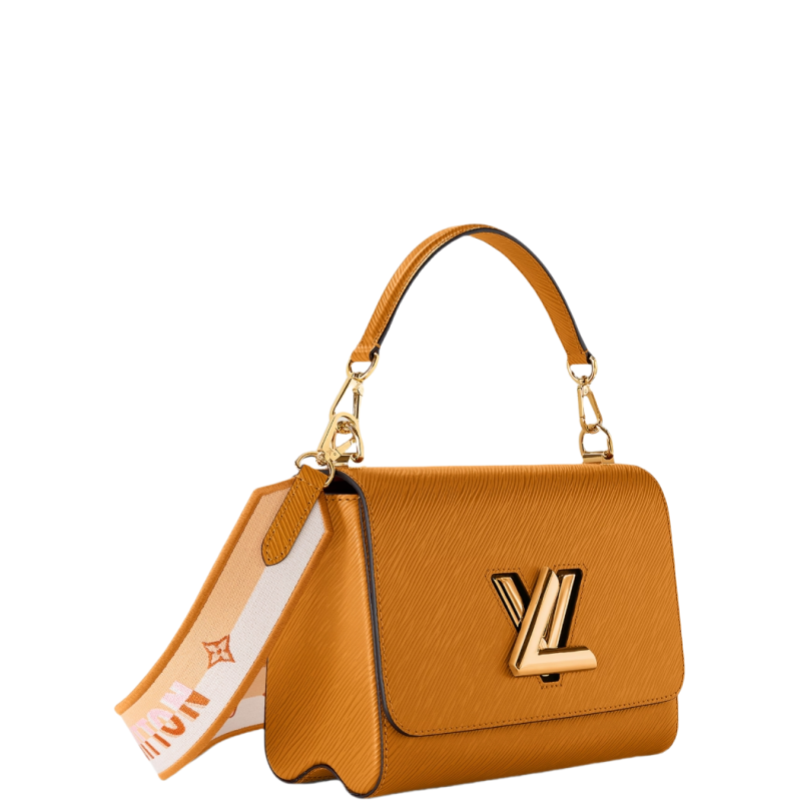 The color-block treatment of this Twist MM handbag in textured Epi leather makes it easy to match. A wide removable strap. with Louis Vuitton woven on one side and Monogram Flowers on the other. means it's perfect for trendy short cross-body carry. The inside zipped pocket is fashioned from leather in a contrasting color.