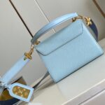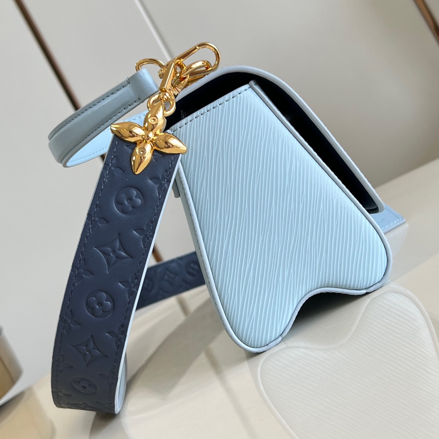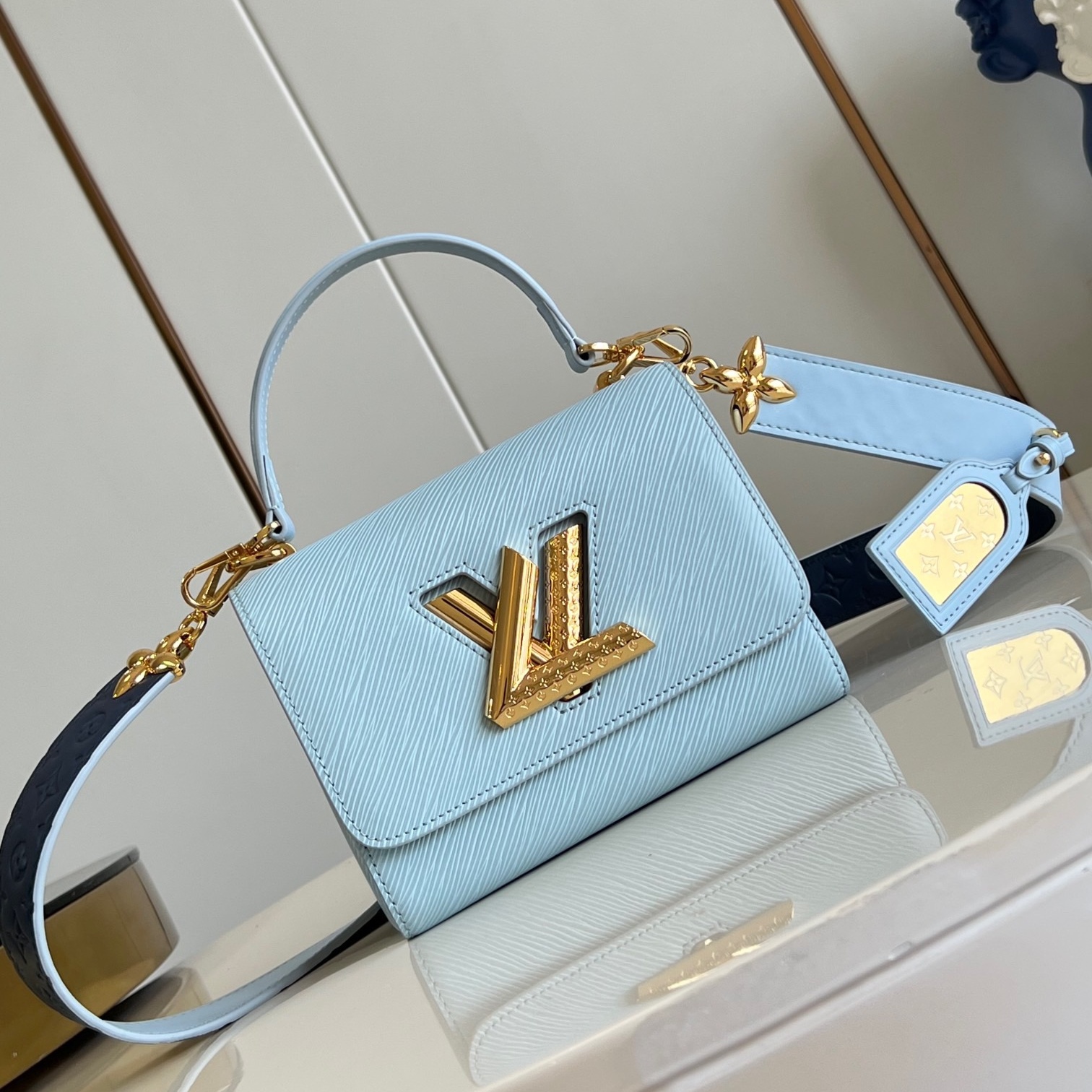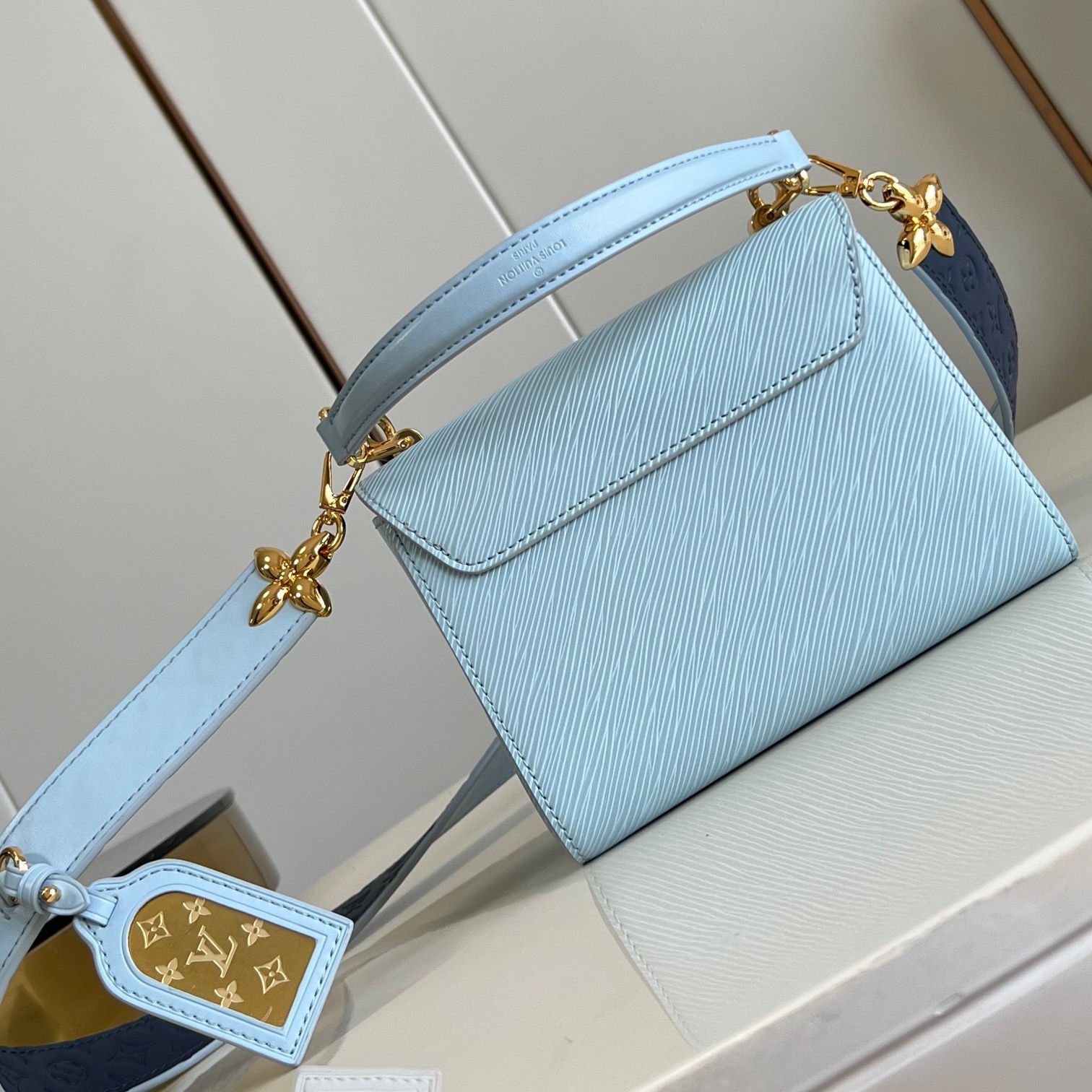 Made from Epi grained leather. this Twist PM handbag features numerous crafted details. such as a Monogramed strap. with a removable mirror charm. that attaches to the bag with precious Monogram Flower hooks. A closer look at the emblematic LV Twist lock reveals meticulous Monogram engraving.